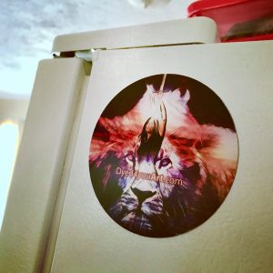 Excited to introduce the next image in our No Fear series called Joyful Warrior. Like a number of our recent releases, Joyful Warrior was birthed as a Prophetic “Portrait” and we’re now releasing it to the gallery so it can be a blessing to everyone. This image is currently our branding on the Dyed4you Ministries site (see below) and is enough of a favorite it is displayed as a custom magnet on my fridge (see below). We pray that this piece and its word bless you!