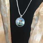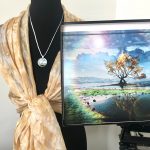 This week’s release, called Intertwined Strength, is another image that began as a Prophetic “Portrait”. And like last week’s release (Introducing: Tenacious Bloom (for the Wife)), this was a Prophetic “Portrait” set including a silk and pendant (pictures below). The recipient was very blessed and we nabbed a screen shot of her on livestream wearing her silk (below). We hope you’re blessed by the new piece and its word! We’ll be sharing more on this piece tomorrow on our Dyed4you Ministries FB page via livestream – 1pm central time, hope to see you there (FYI we’ll share it on our Dyed4you Ministries site after the fact if you can’t be there).